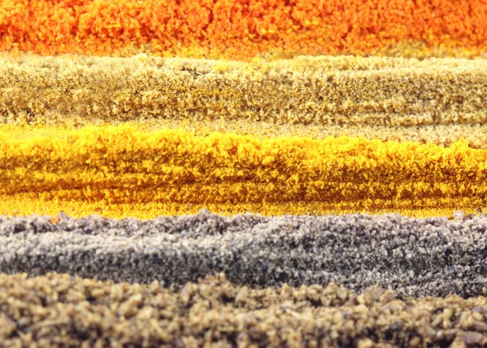 Estas especias son el “kit esencial” para cocinar con intención. El ajo y la cebolla, en molido o granulado, construyen la base; la cúrcuma añade color dorado y matiz terroso; el jengibre aporta un picor fresco. El hinojo y la alholva suman notas anisadas y tostadas. Úsalas según el formato para ajustar intensidad y textura.